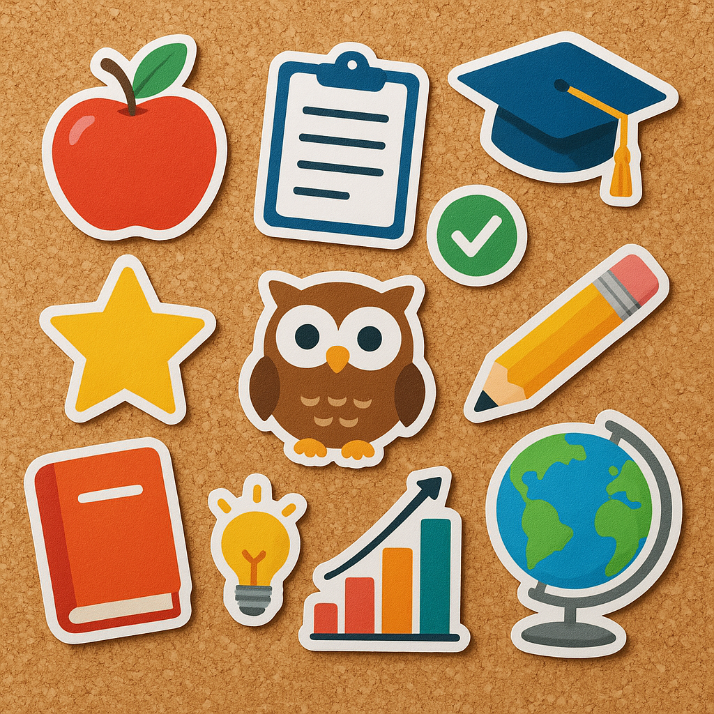 - Motywacyjne naklejki – kolorowe symbole, które służą do nagradzania uczniów za osiągnięcia, punktowane zachowanie czy udział w wydarzeniach.