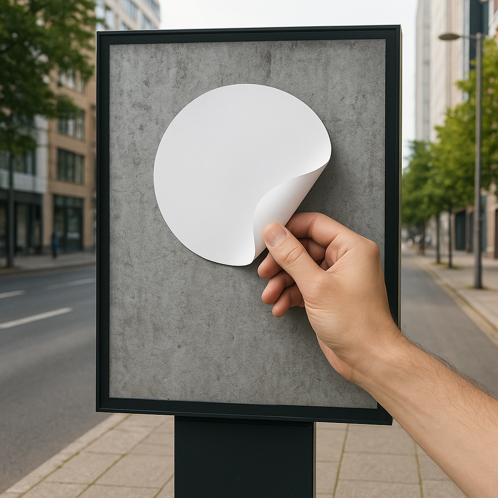 • Łatwa wymiana – gdy kampania się kończy, naklejki szybko usuniemy bez konieczności stosowania agresywnych środków chemicznych.